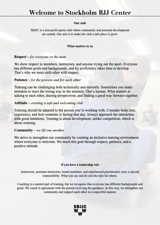 You can also reach us at info@bjjcenter.se.